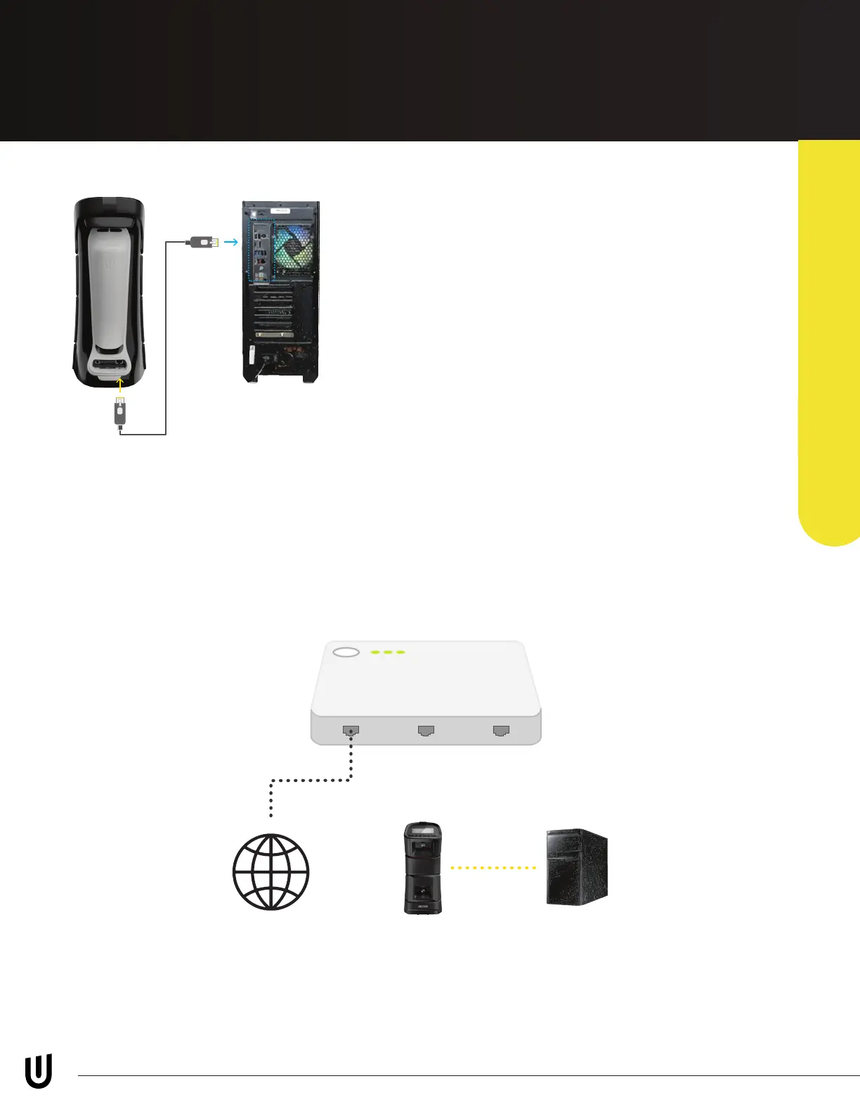 To connect your EYE MINI with PC, connect the ethernet cable from the PC to the back of the EYE