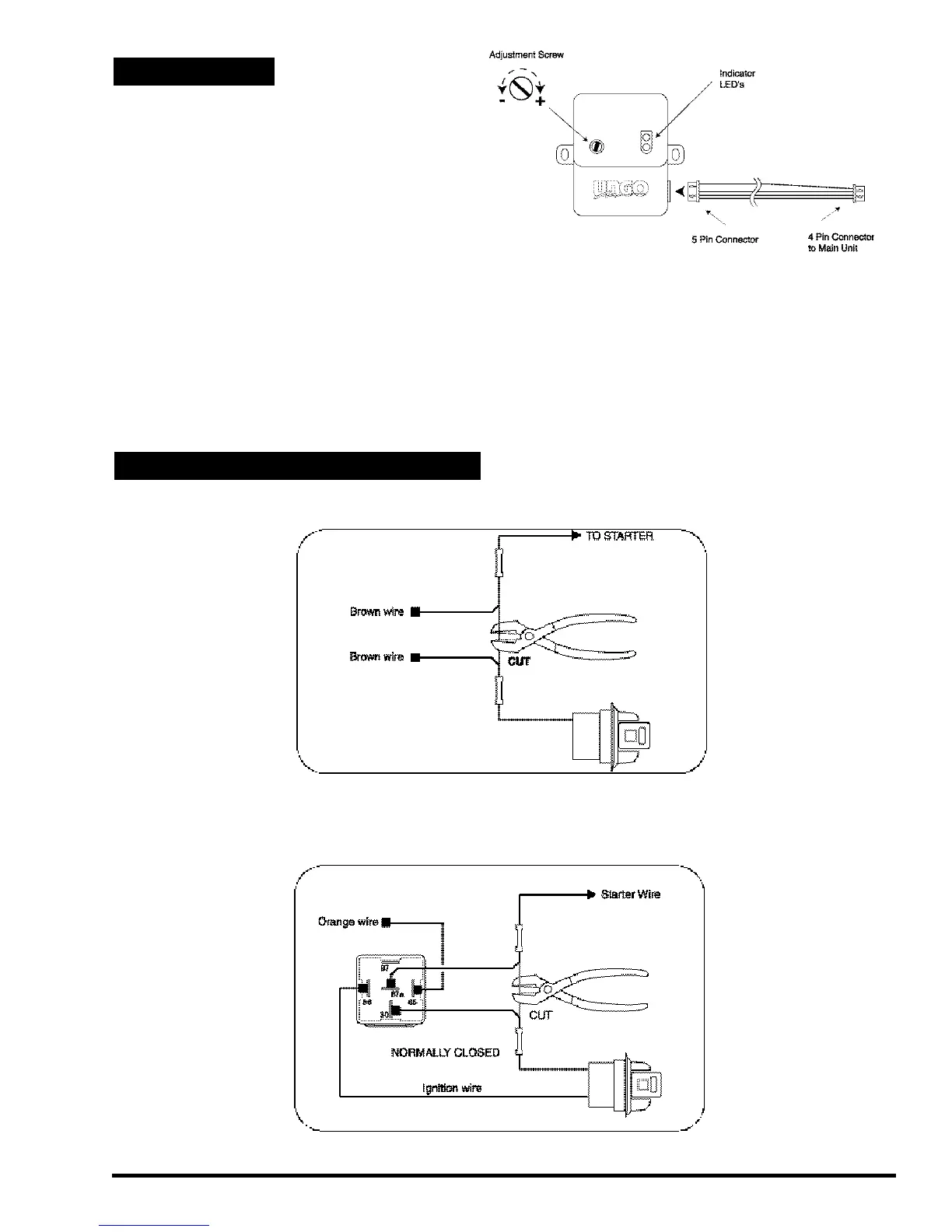 The on-board starter defeat relay is designed for normally closed operation only. Connect the brown wires as shown.