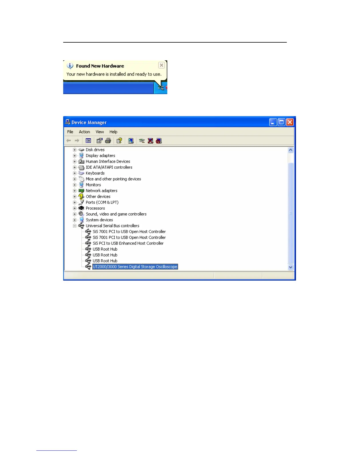 In the pop up [Device Manager] dialogue box, you can see a yellow UT2000/3000