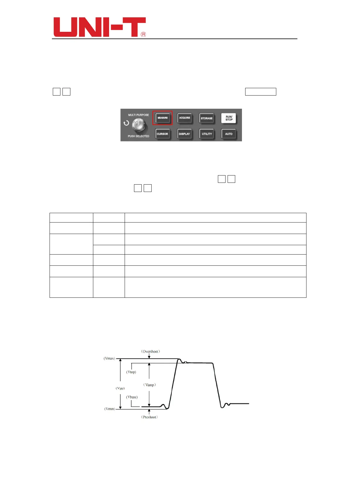 Below are the automatically measured voltage parameter for the UTD2000 series