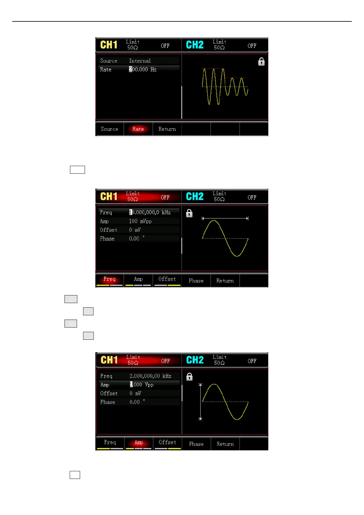 Press Freq soft key to set the frequency, use numerical keyboard to input 2 and then select the unit of
