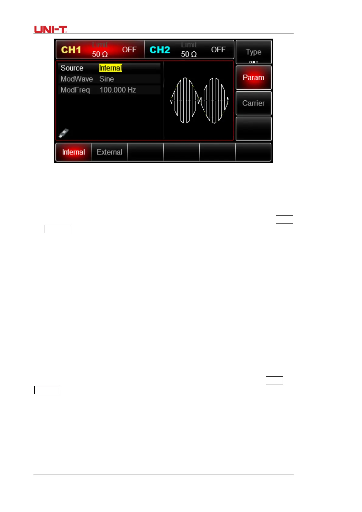 When modulation source is internal, frequency of modulation wave can be modulated. After