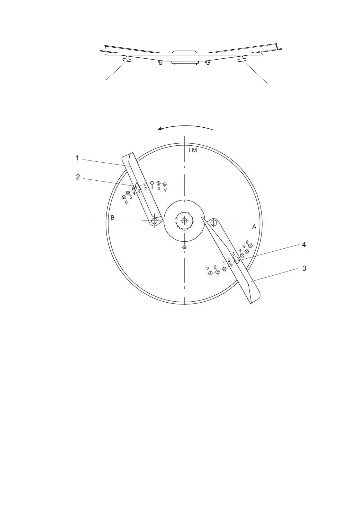 Adjustment of the blades of LM 20 disc (e.g. for calcium ammonium nitrate 27.5% N,