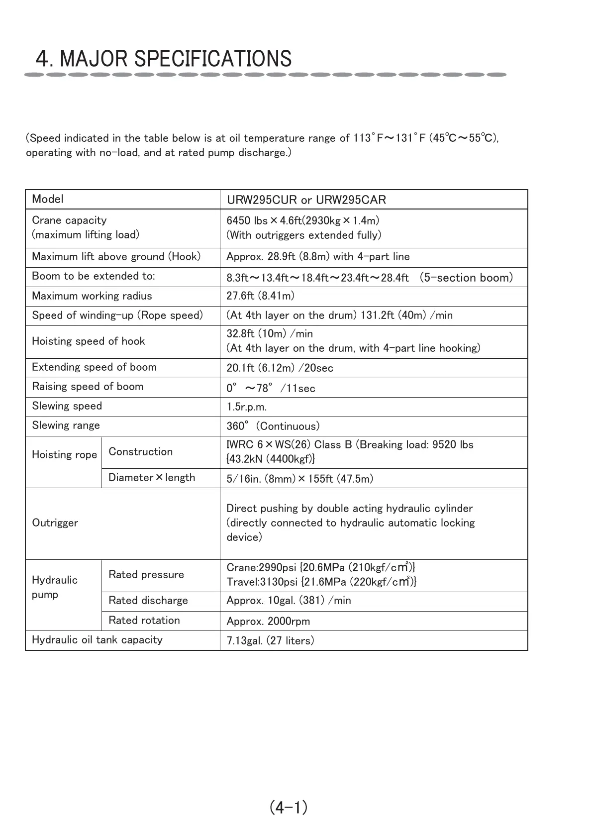 (See iicate i te tale elow i at oil teeratre rae of 113゜F~131゜F (45℃~55℃,