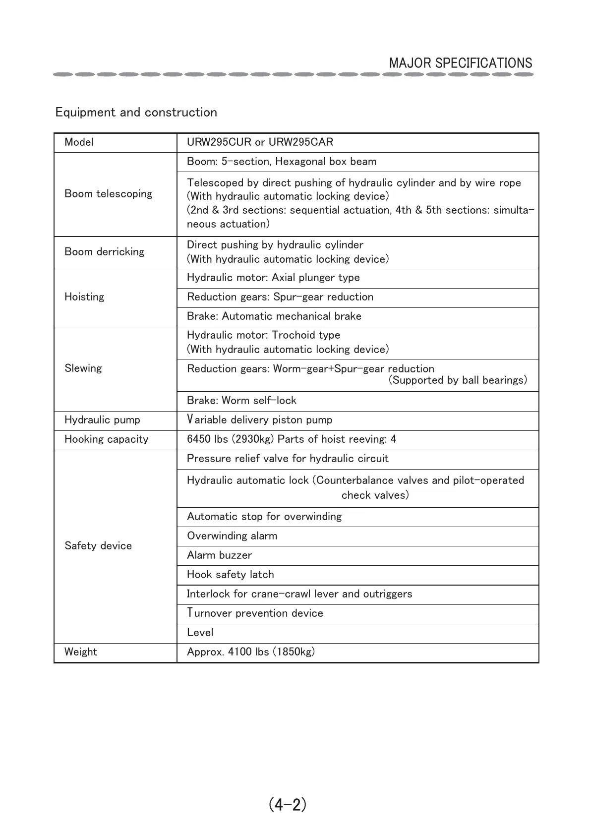 Hooki caacity 6450 l (2930k Part of oit reei: 4