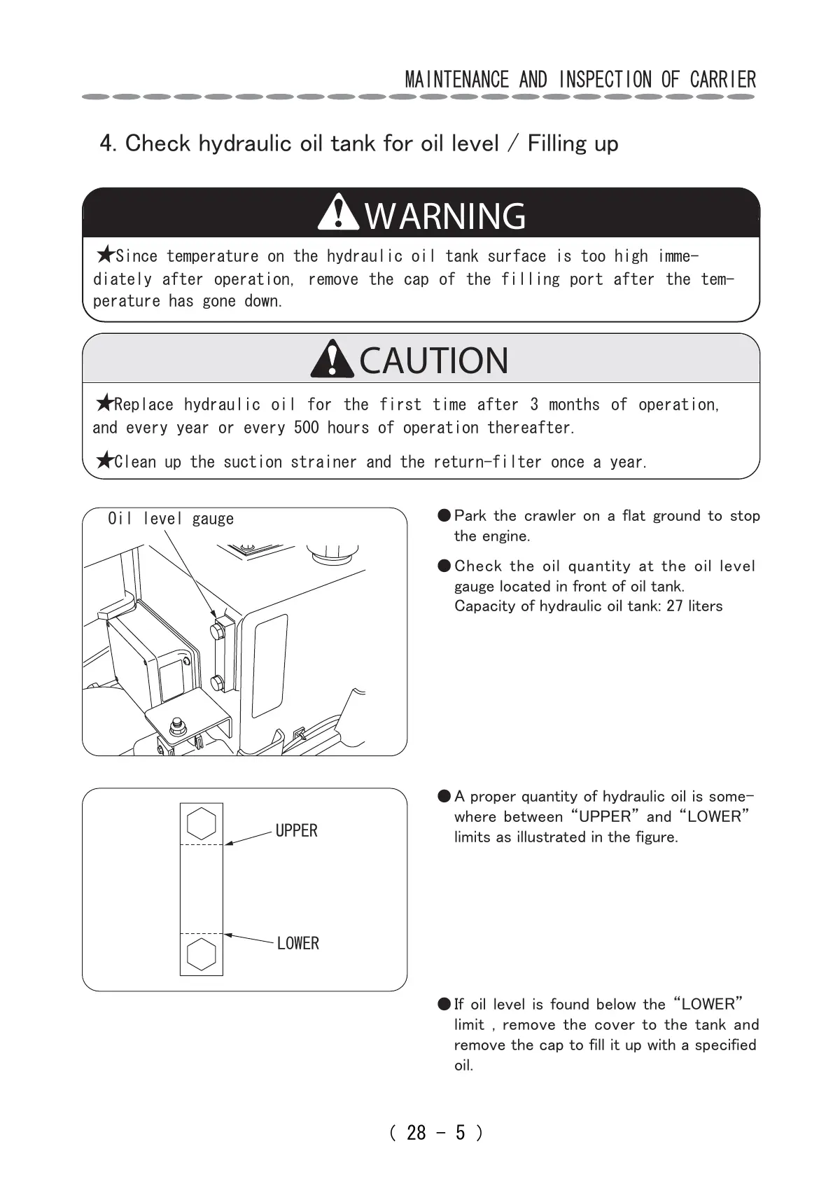 4. Ceck yralic oil tak for oil leel Filli