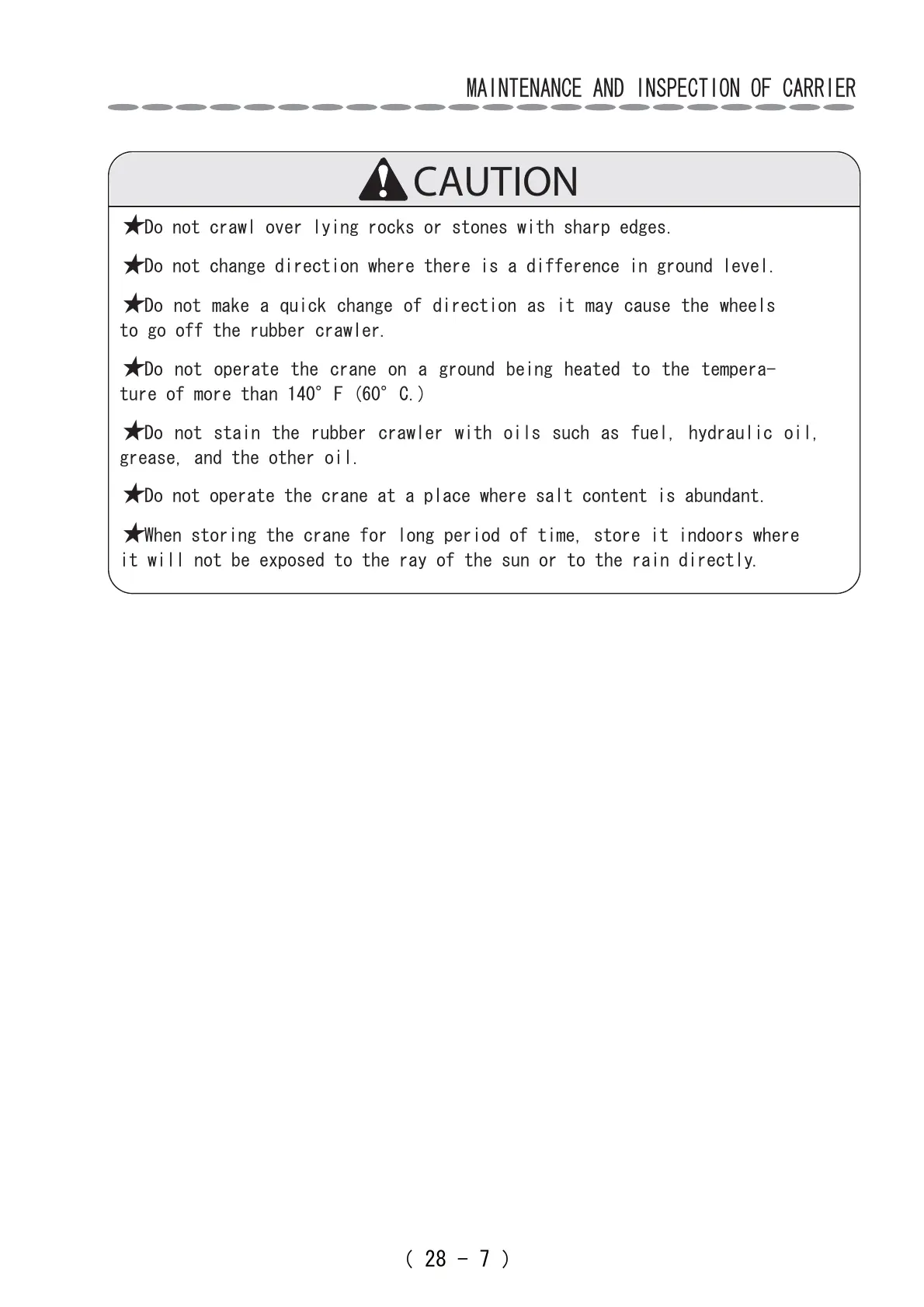 Do not operate the crane at a place where salt content is abundant.