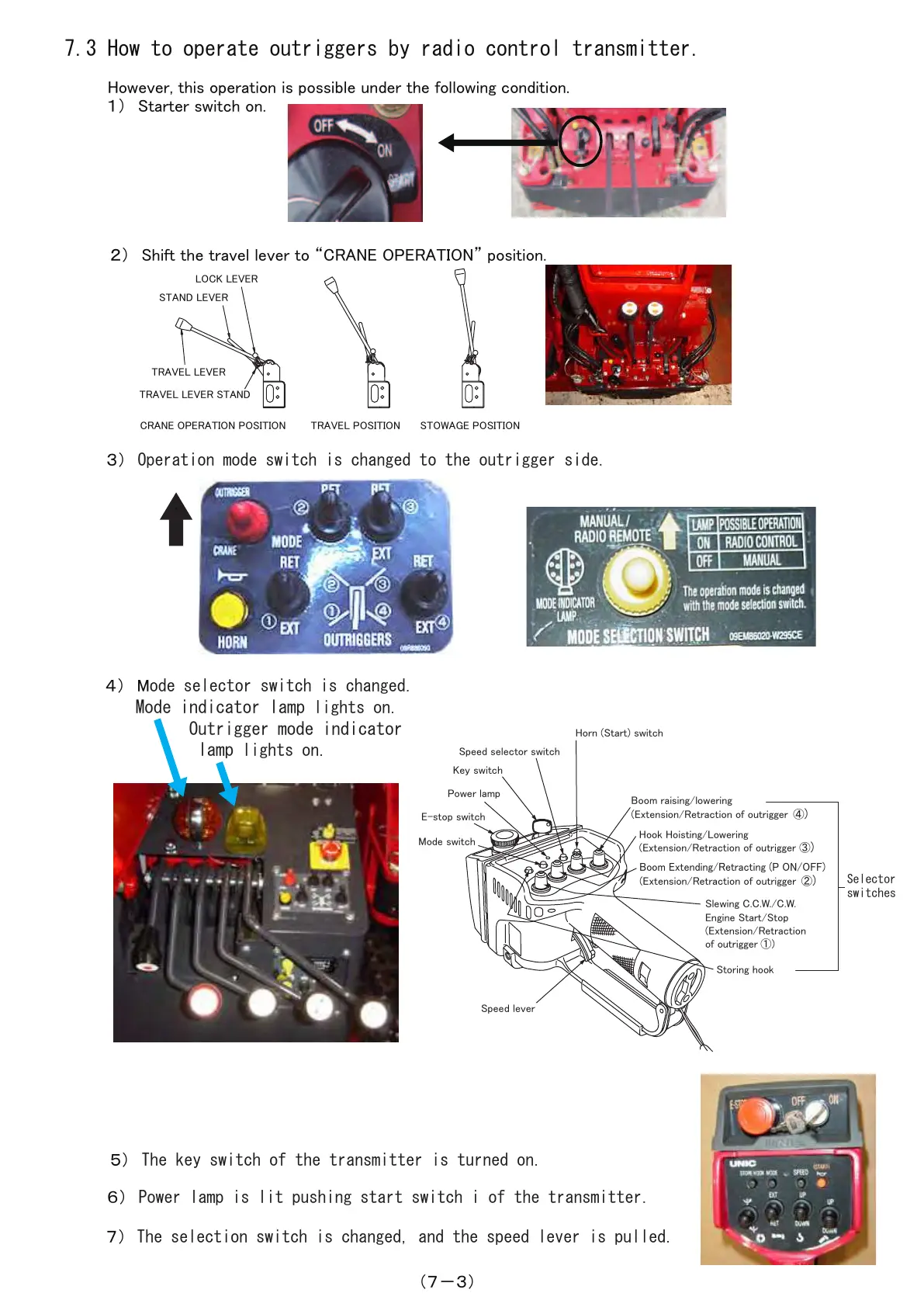 2) Shift the travel lever to “CRANE OPERATION” position.