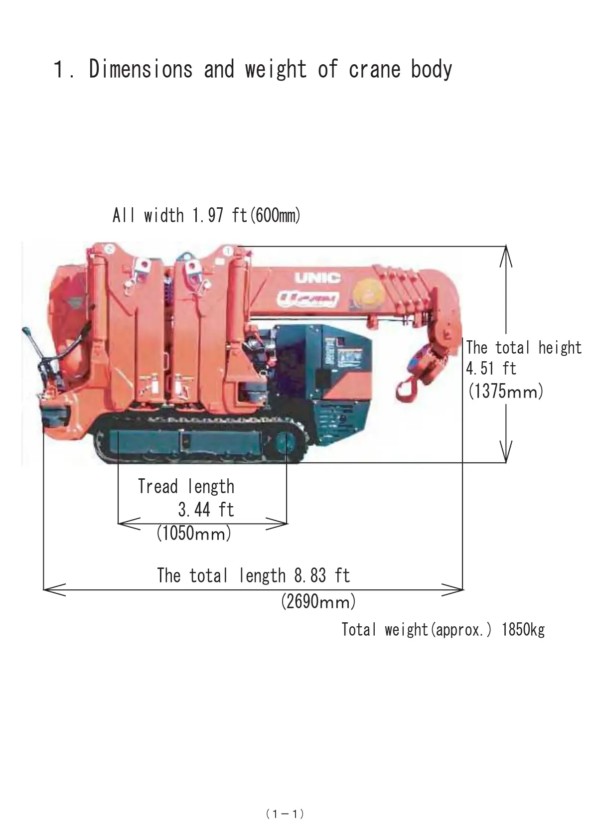1.Dimensions and weight of crane body