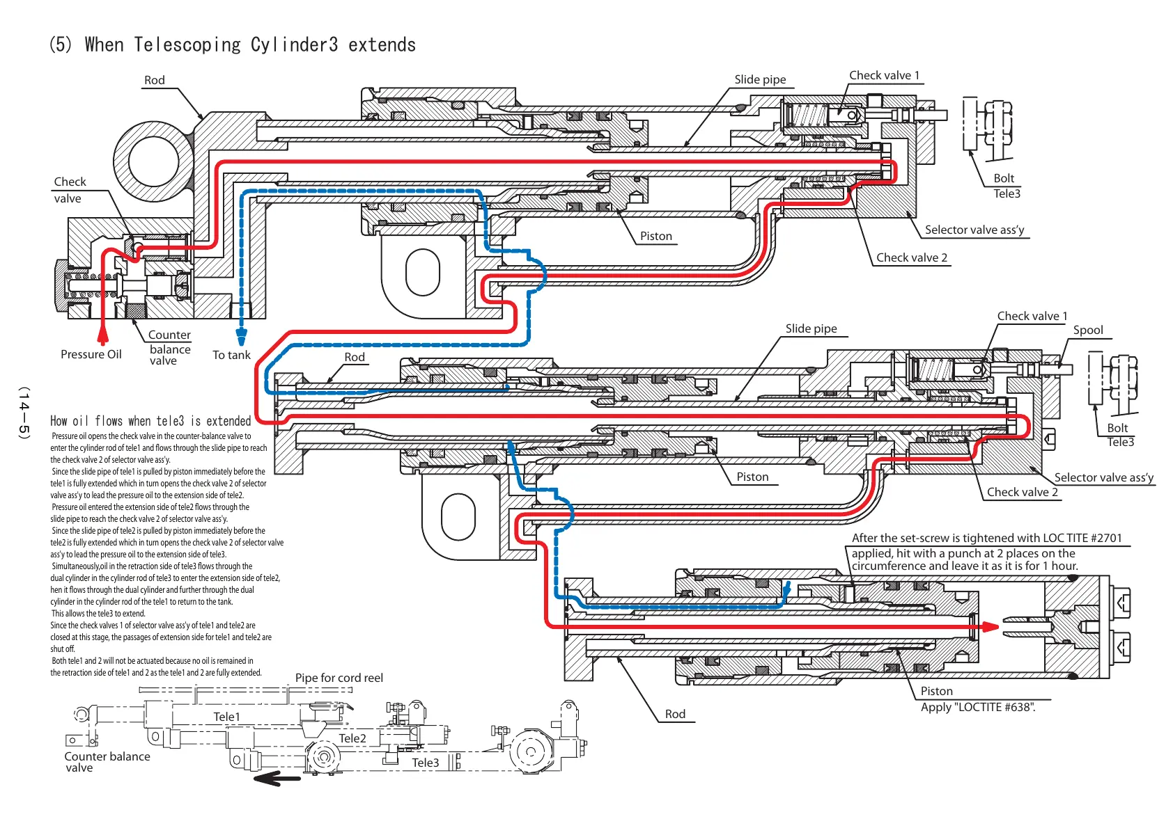 dual cylinder in the cylinder rod of tele3 to enter the extension side of tele2,