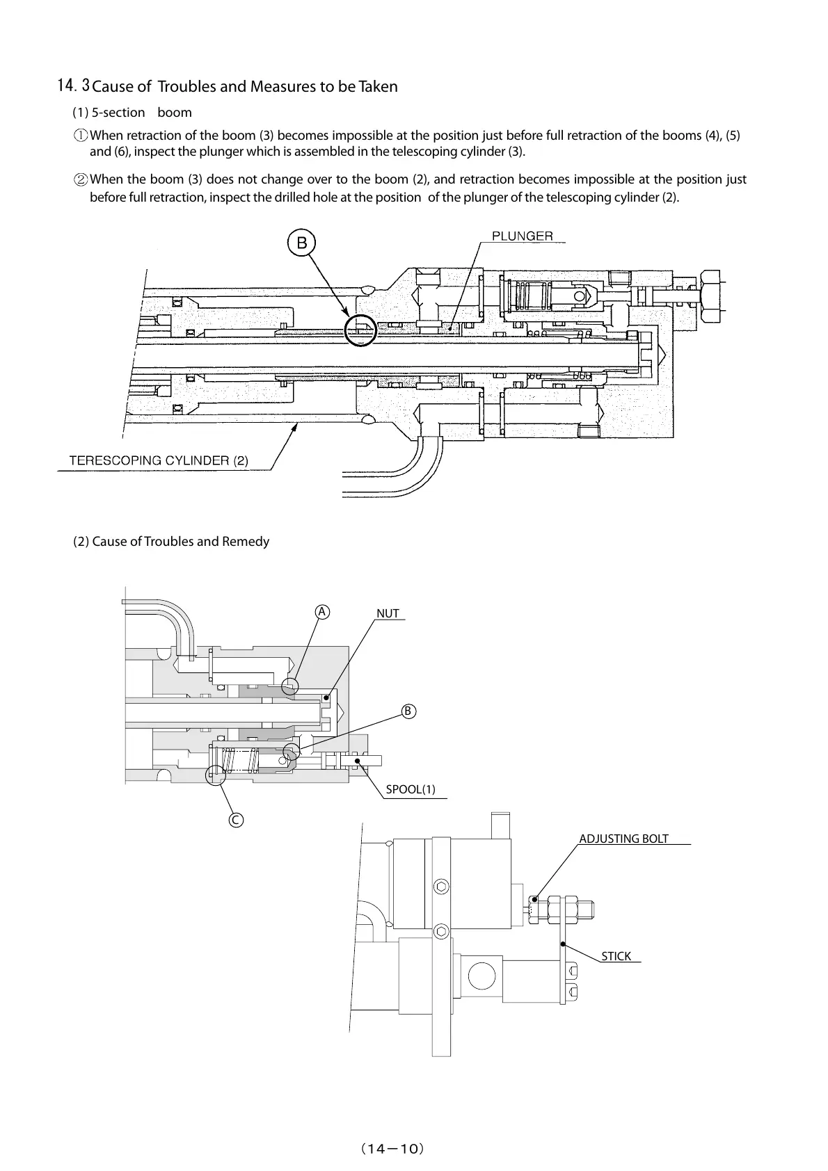 and (6), inspect the plunger which is assembled in the telescoping cylinder (3).