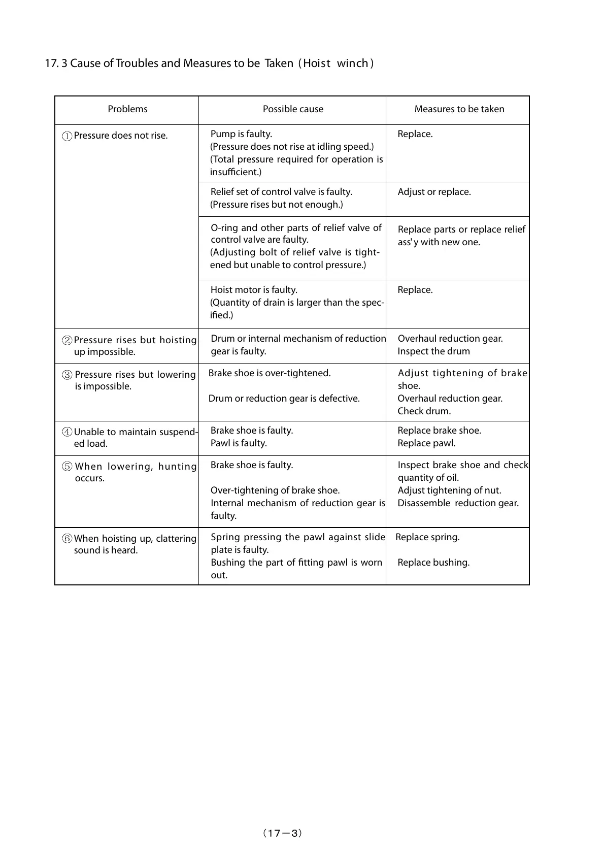 17. 3 Cause of Troubles and Measures to be Taken ( Hoist winch )