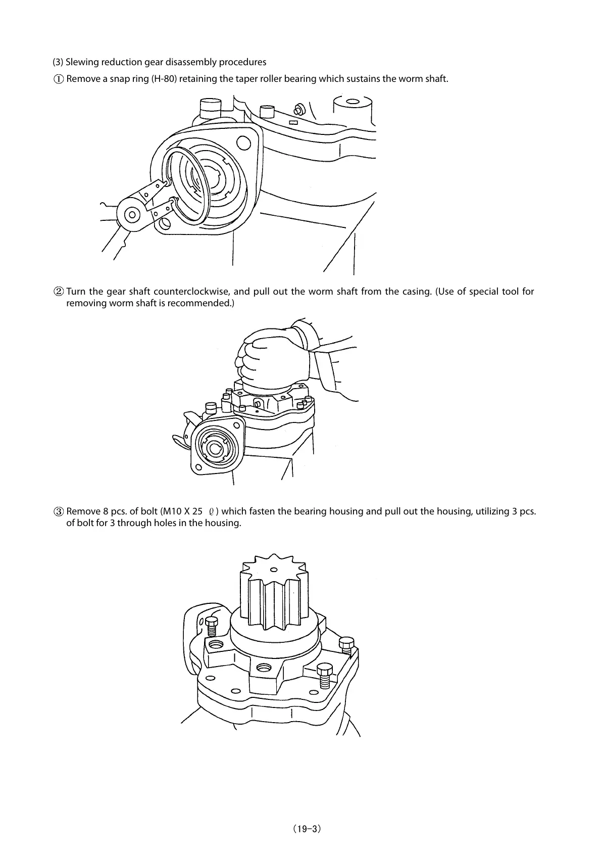 Remove a snap ring (H-80) retaining the taper roller bearing which sustains the worm shaft.