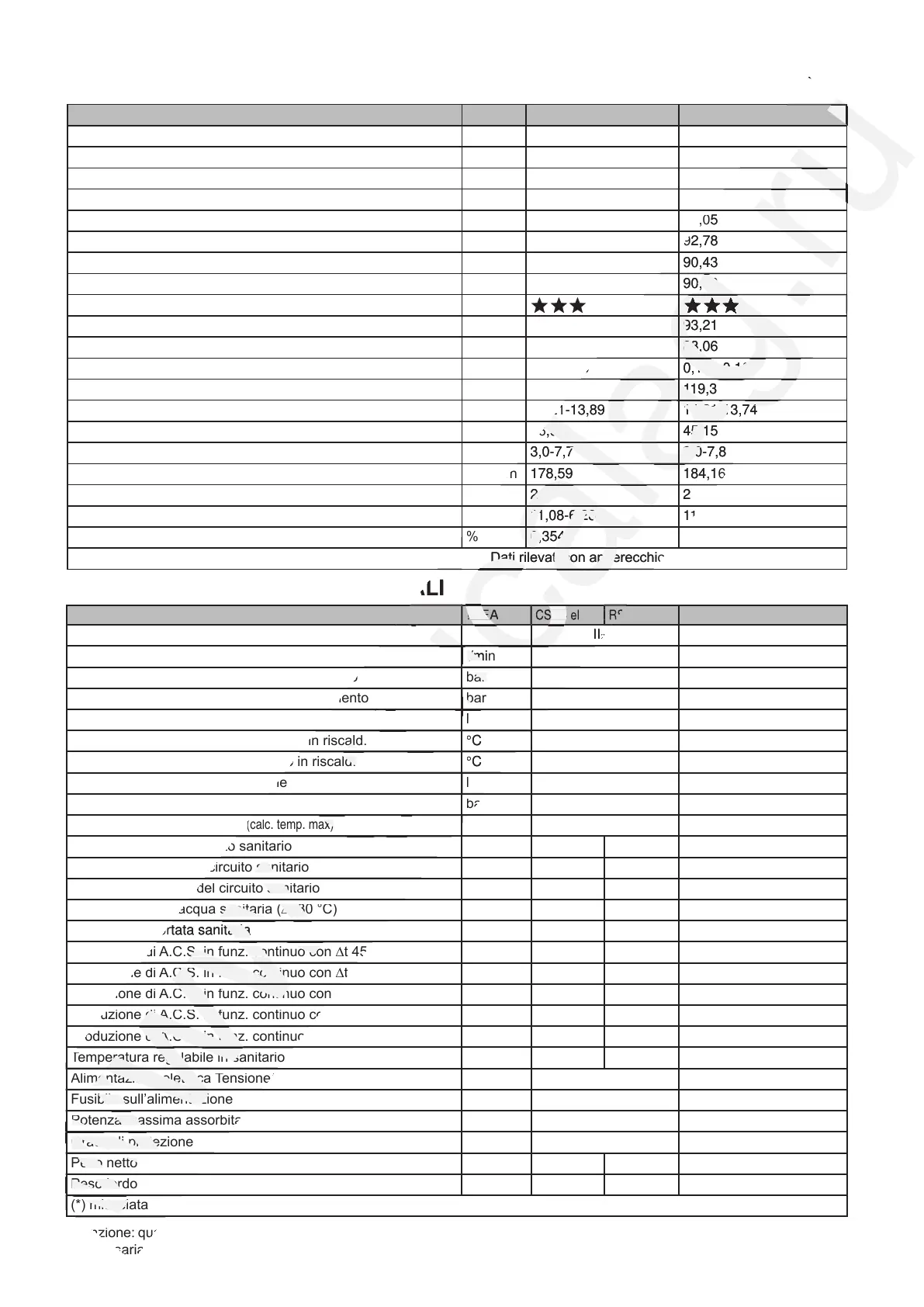 Note: (*) Temperatura Ambiente = 20°C Dati rilevati con apperecchio funzionante a Metano (G20)