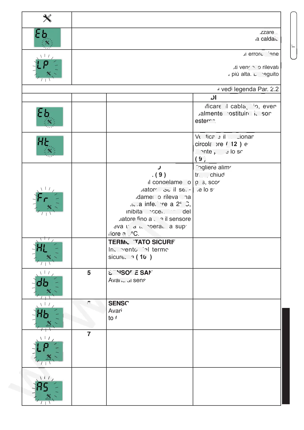 2) In caso di anomalia che provoca il fermo della caldaia il codice di errore viene