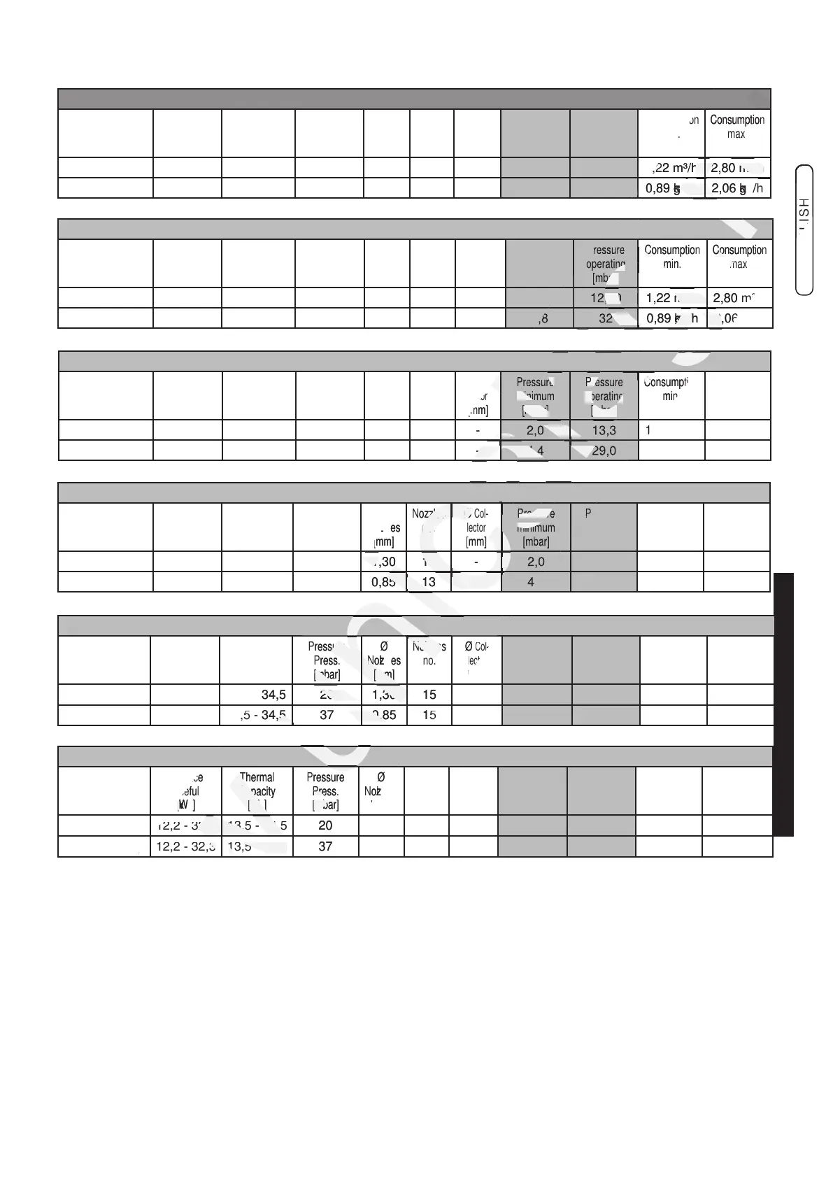 The b urner pressures stated in the following tab le must b e checke d after 3 minutes of operation and refer to, for