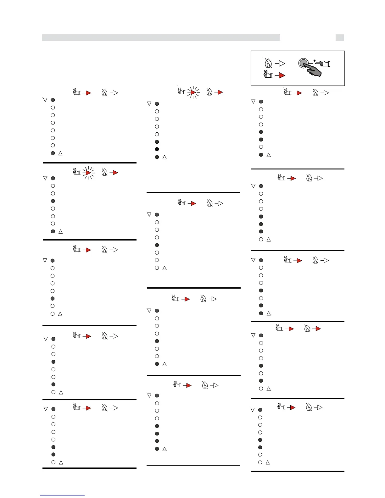 Note: The error code is given by the combination of two, three, four of five leds,