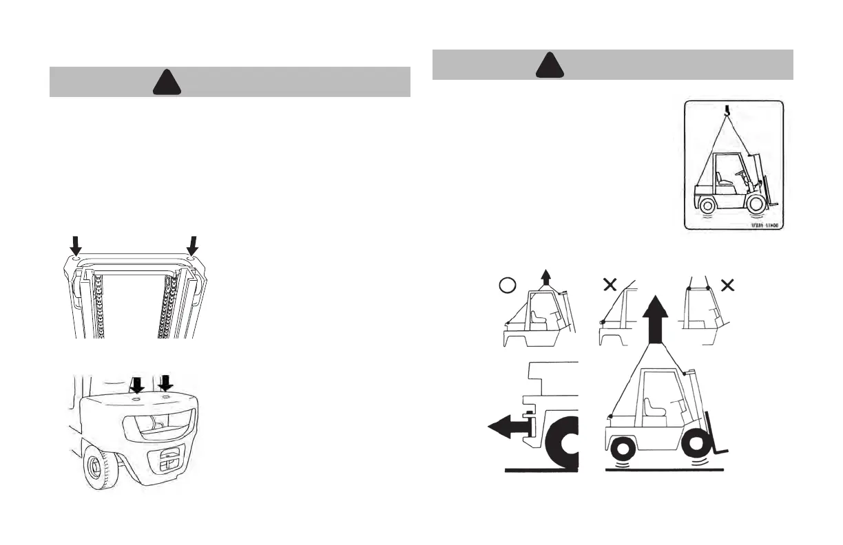When lifting the entire lift truck, secure cables/wire ropes to holes