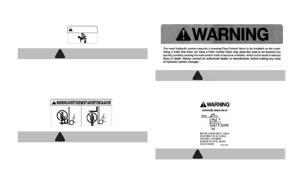 UniCarriers 1F2 - Pinch Point Decal; Caution Fork Decal; Vaporizer Drain Valve Warning Decal (Option from 2018)