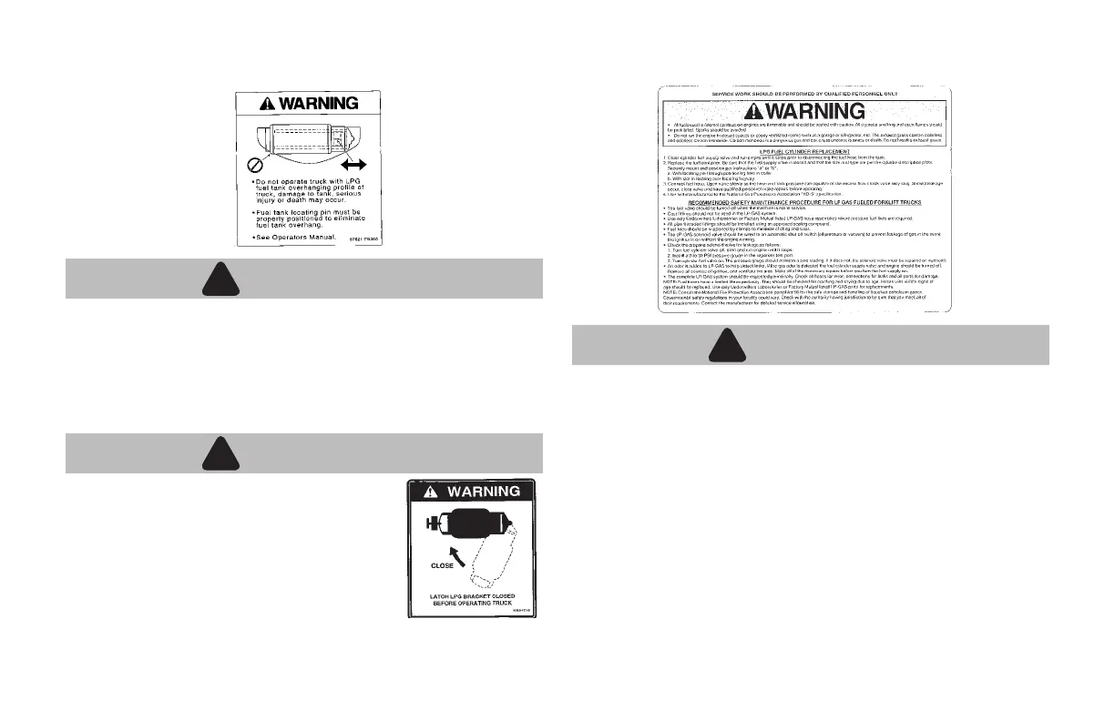 • Do not operate the lift truck with the LPG cylinder (tank)