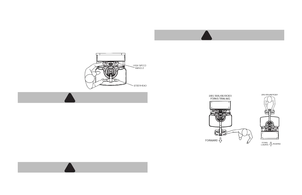 When operating either unit with forks leading, always