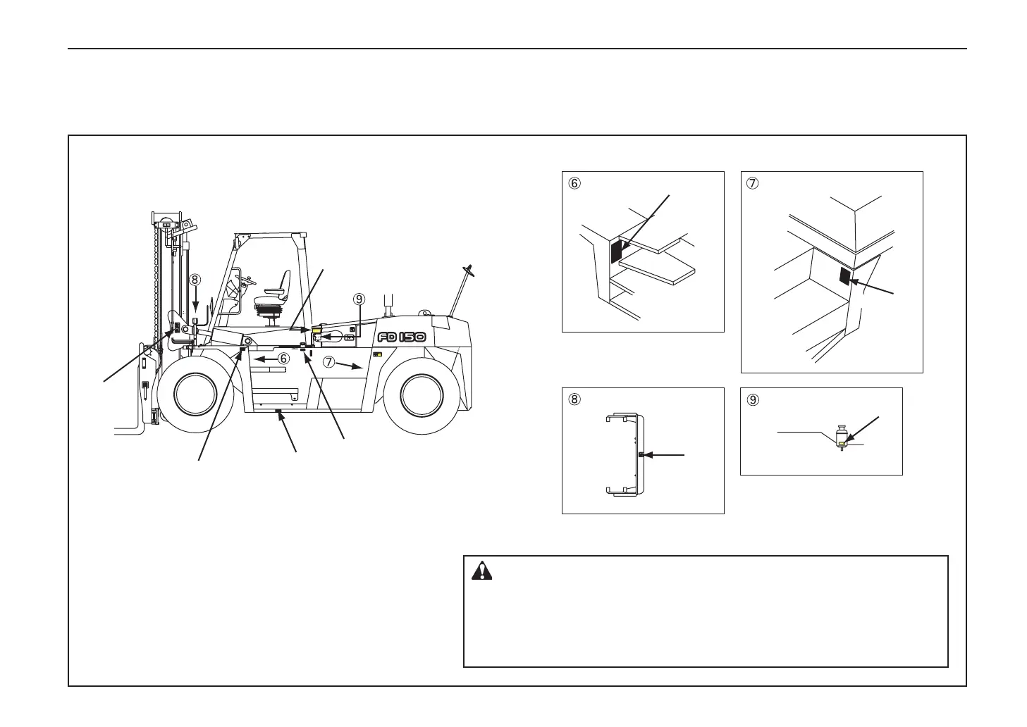 D : “Do not stand under raised forks” decal