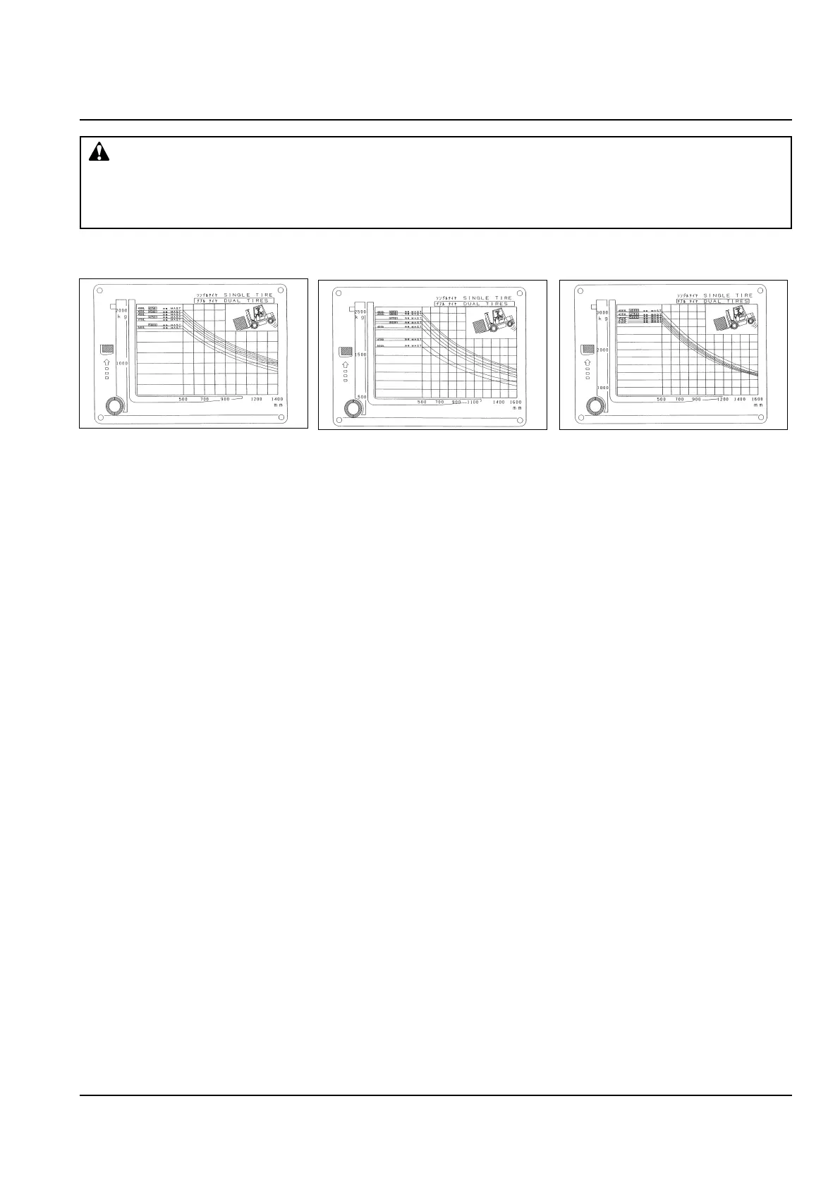 whose lifting height is less than 5 m. Note that load charts for lift trucks with a high mast whose