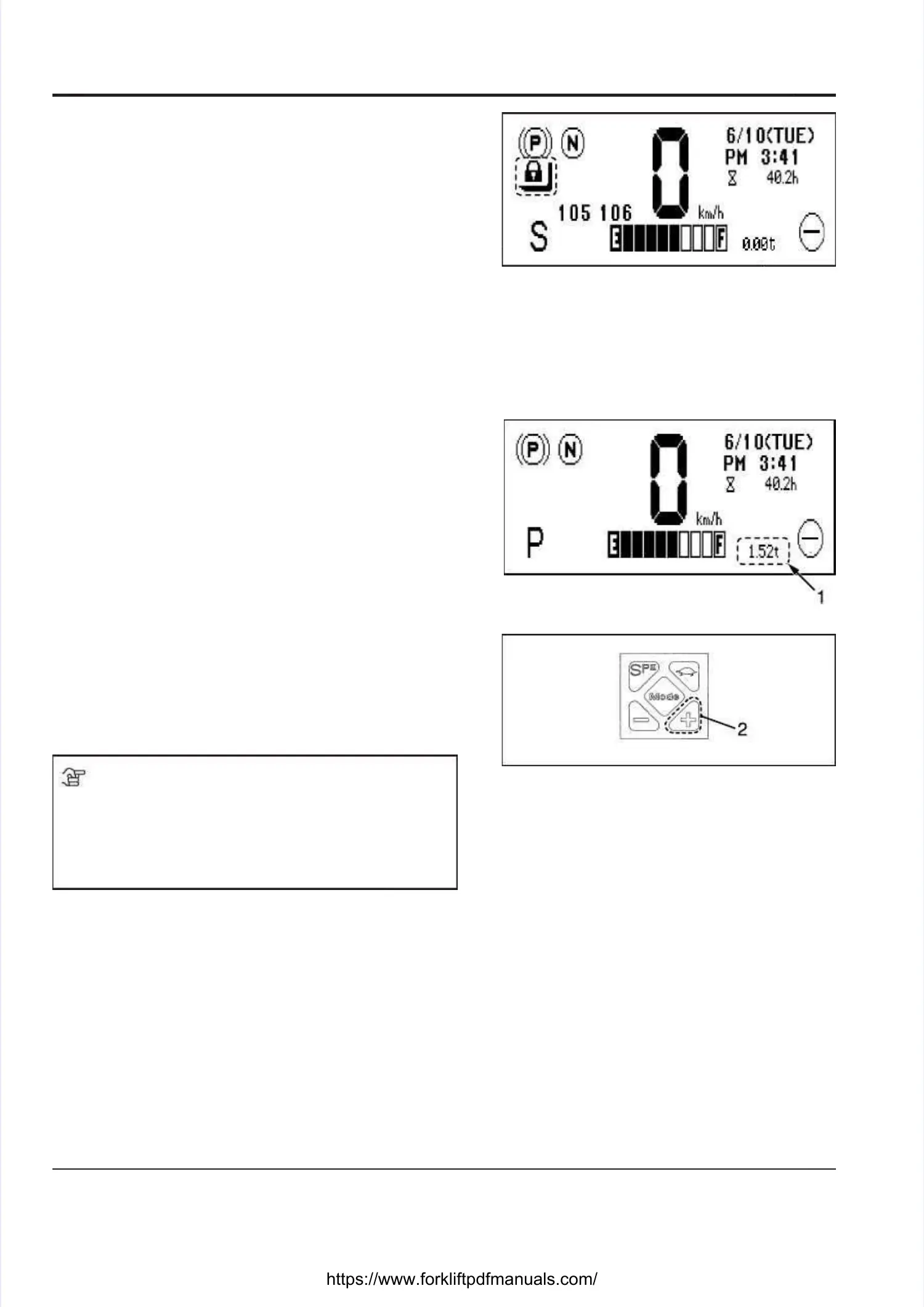 The load weight [1] shown on the screen should onlyThe load weight [1] shown on the screen should only