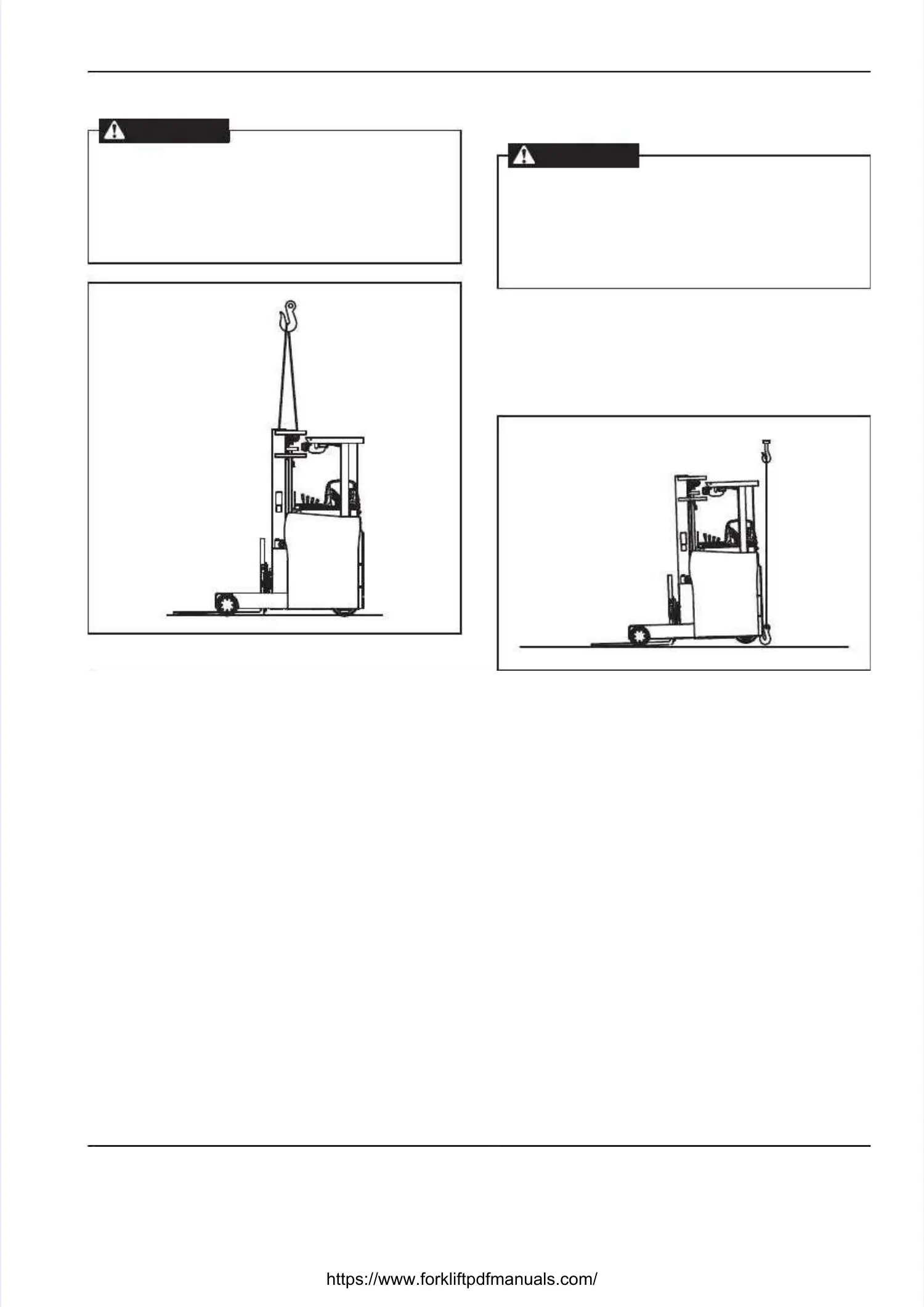 When hoisting the lift truck, attach wire ropes toWhen hoisting the lift truck, attach wire ropes to