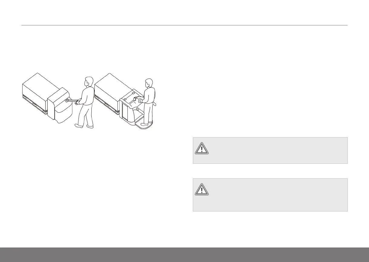 Take great care when guiding a pedestrian truck with