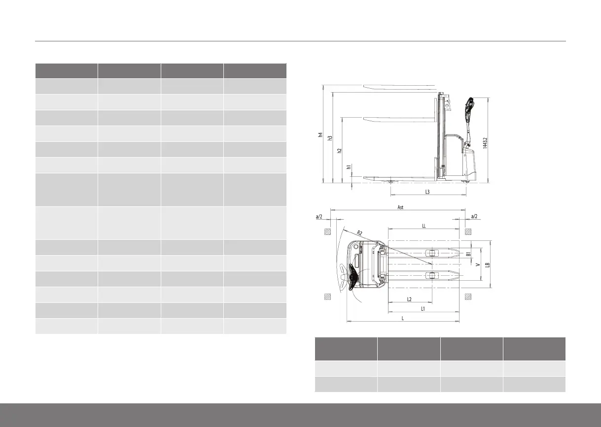 UniCarriers PSH 160 SDTFV - Dimensions for PS, PSH Series Trucks