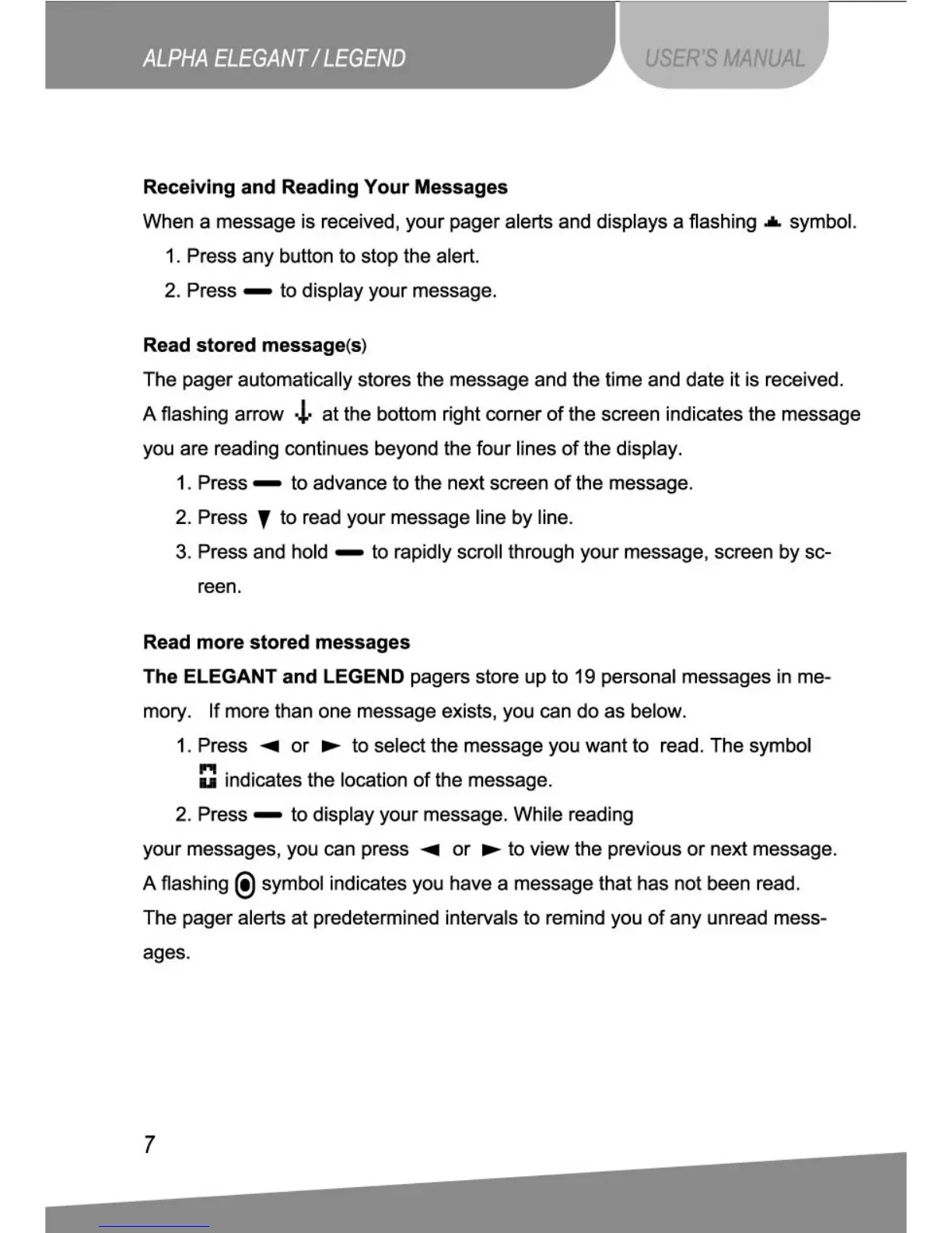 unication Alpha Elegant - Receiving and Reading Your Messages; Read Stored Message(s); Read More Stored Messages
