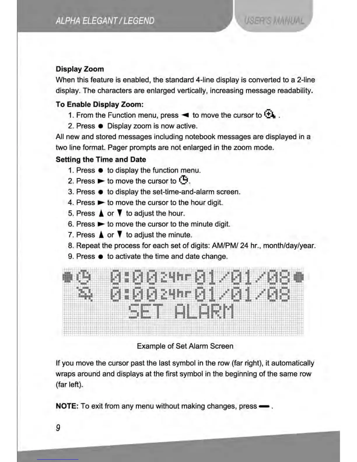 unication Alpha Elegant - Display Zoom; To Enable Display Zoom; Setting the Time and Date