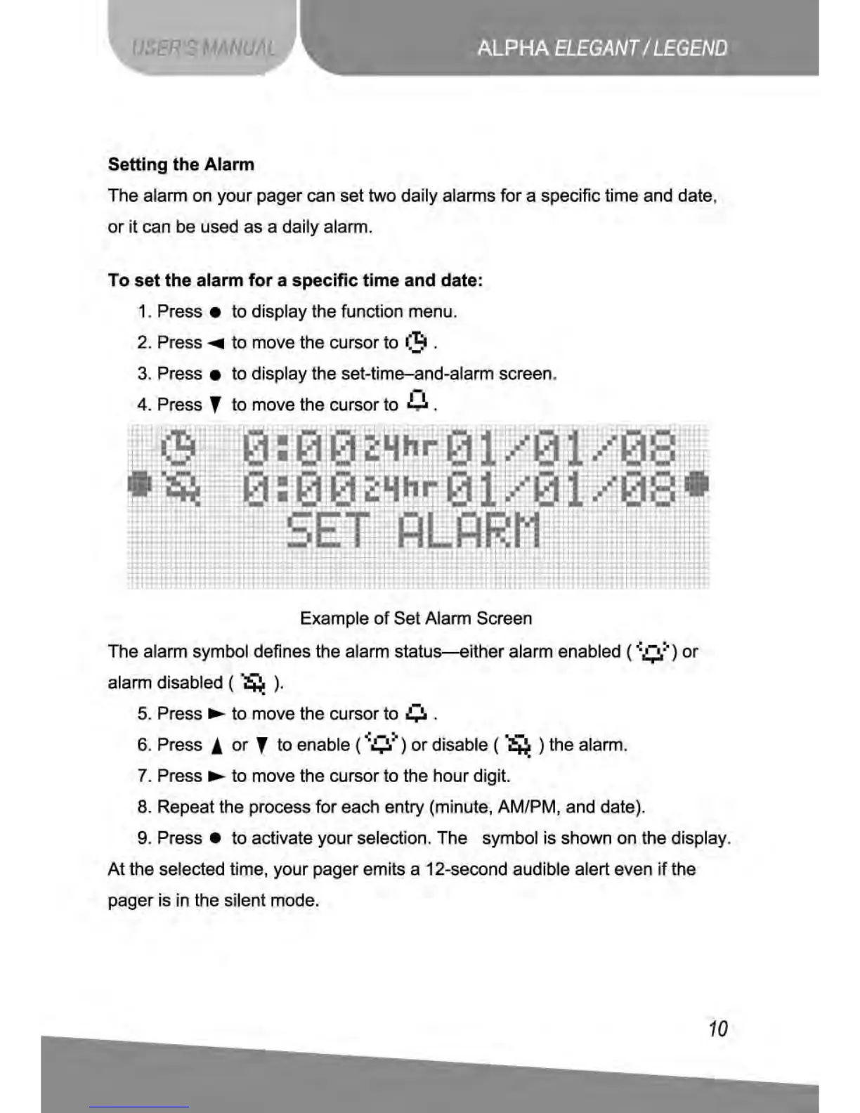 unication Alpha Elegant - Setting the Alarm; Set Alarm for Specific Time and Date