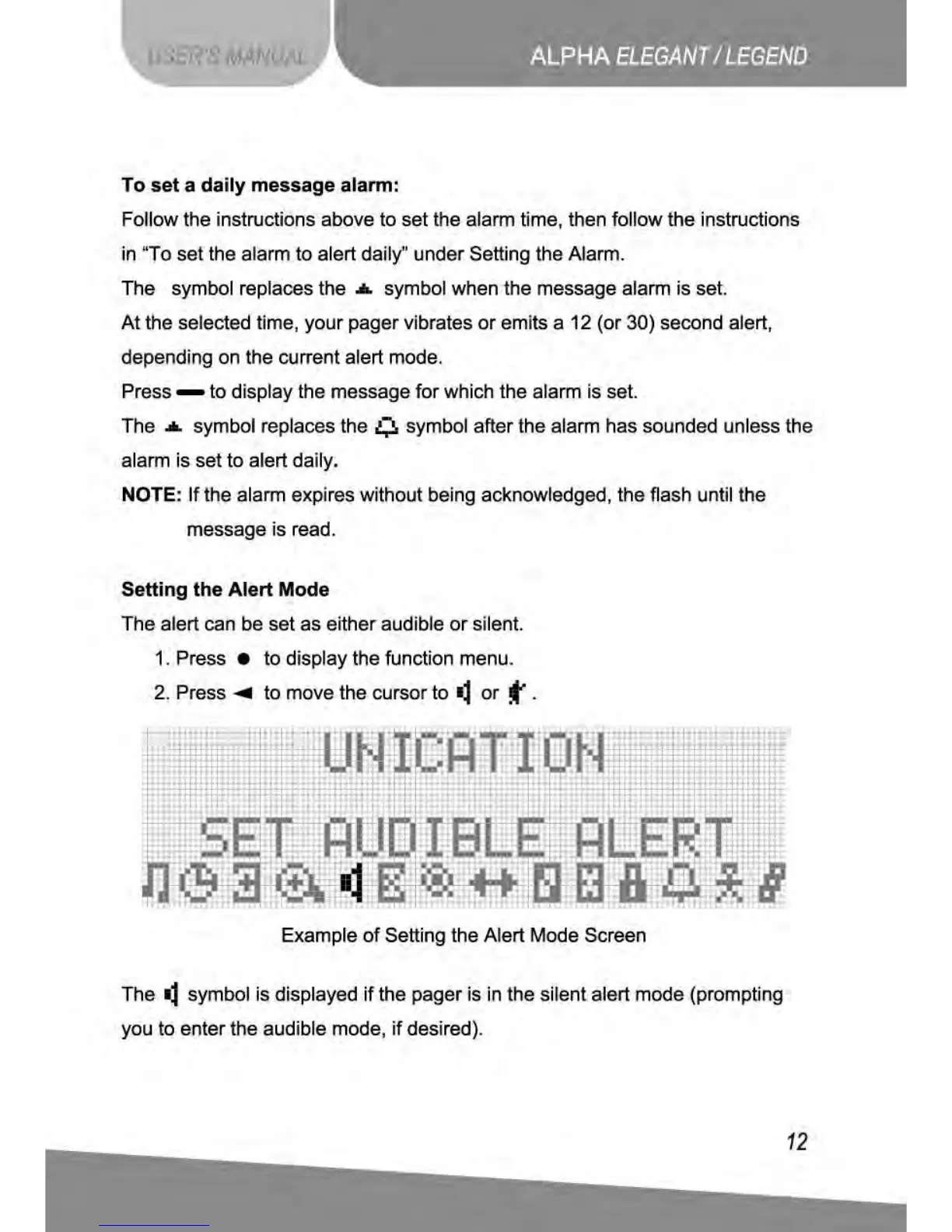 unication Alpha Elegant - Set Daily Message Alarm; Setting the Alert Mode