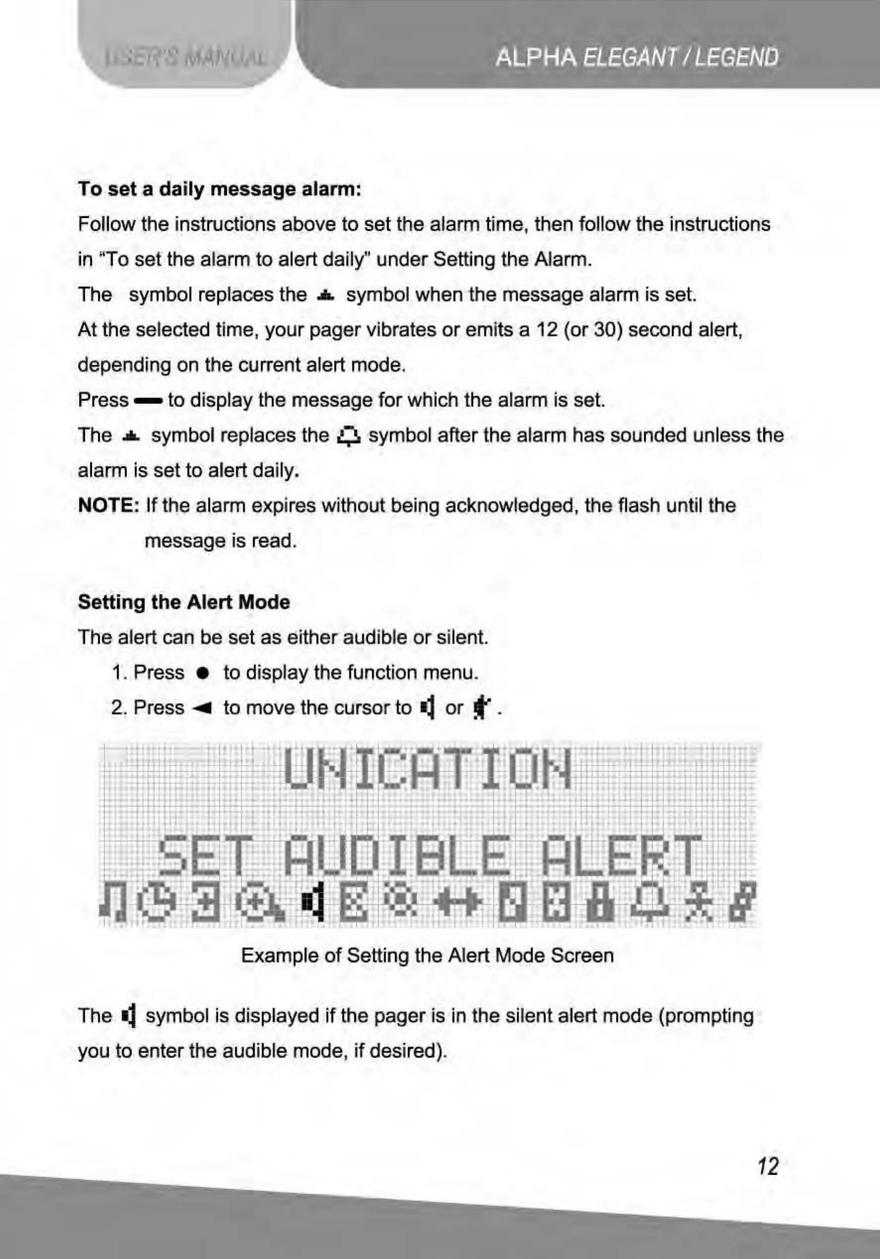 symbol when the message alarm is set.