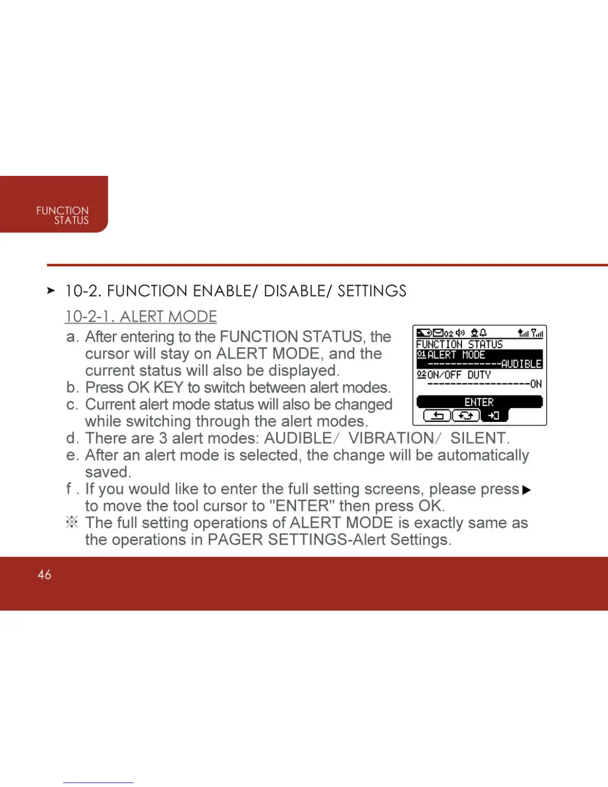unication E3 - Function Enable;Disable;Settings; Alert Mode