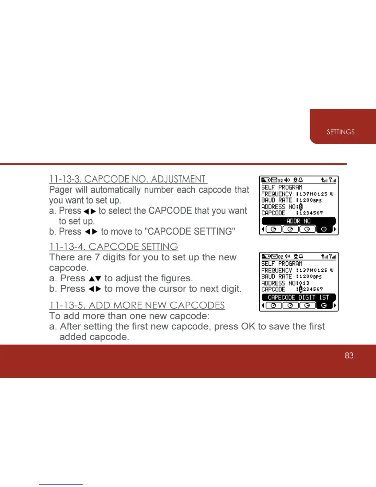 unication E3 - Capcode No. Adjustment; Capcode Setting; Add more New Capcodes