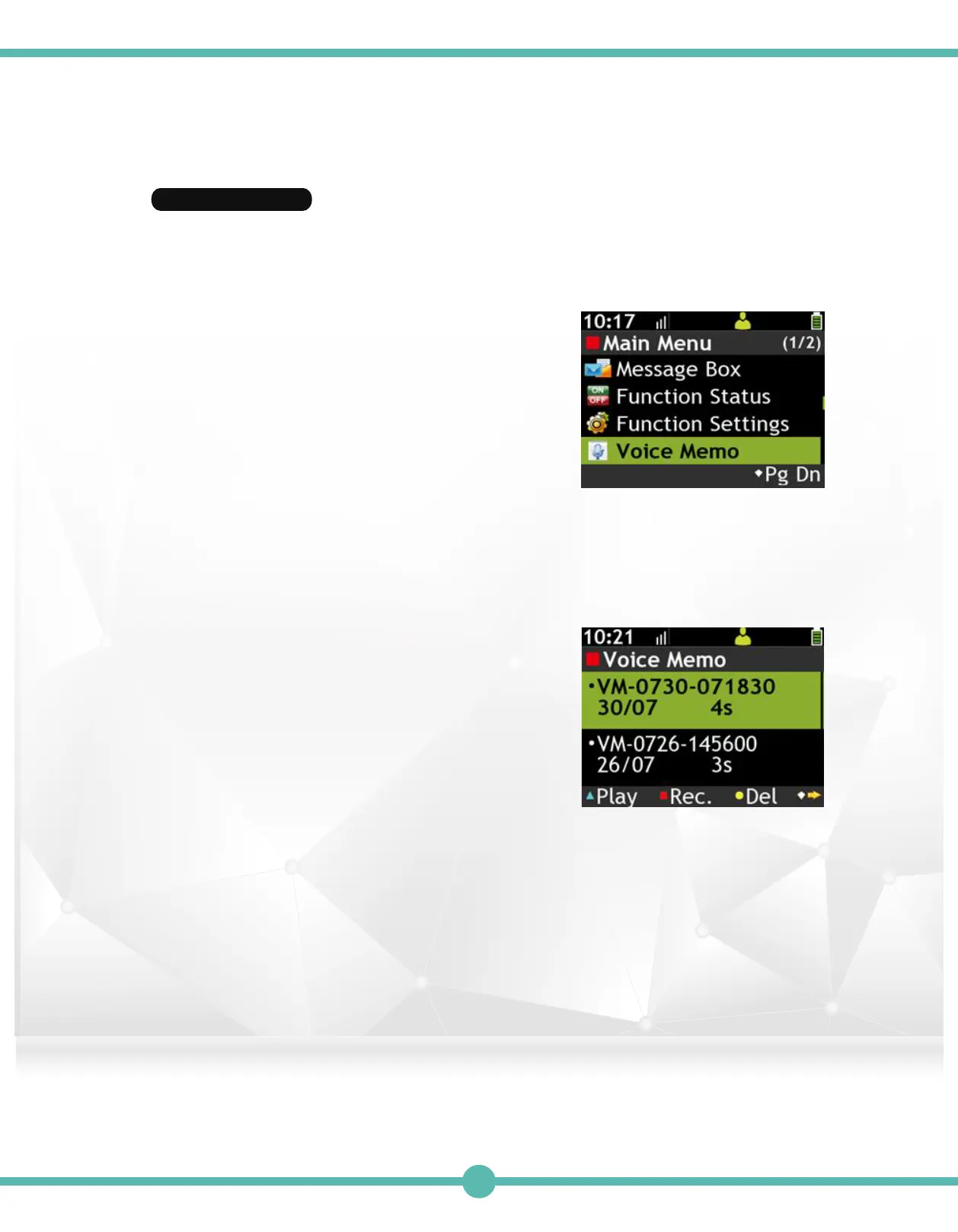 F. Press the "K2" Key to set highlighted voice memo as an Alarm.
