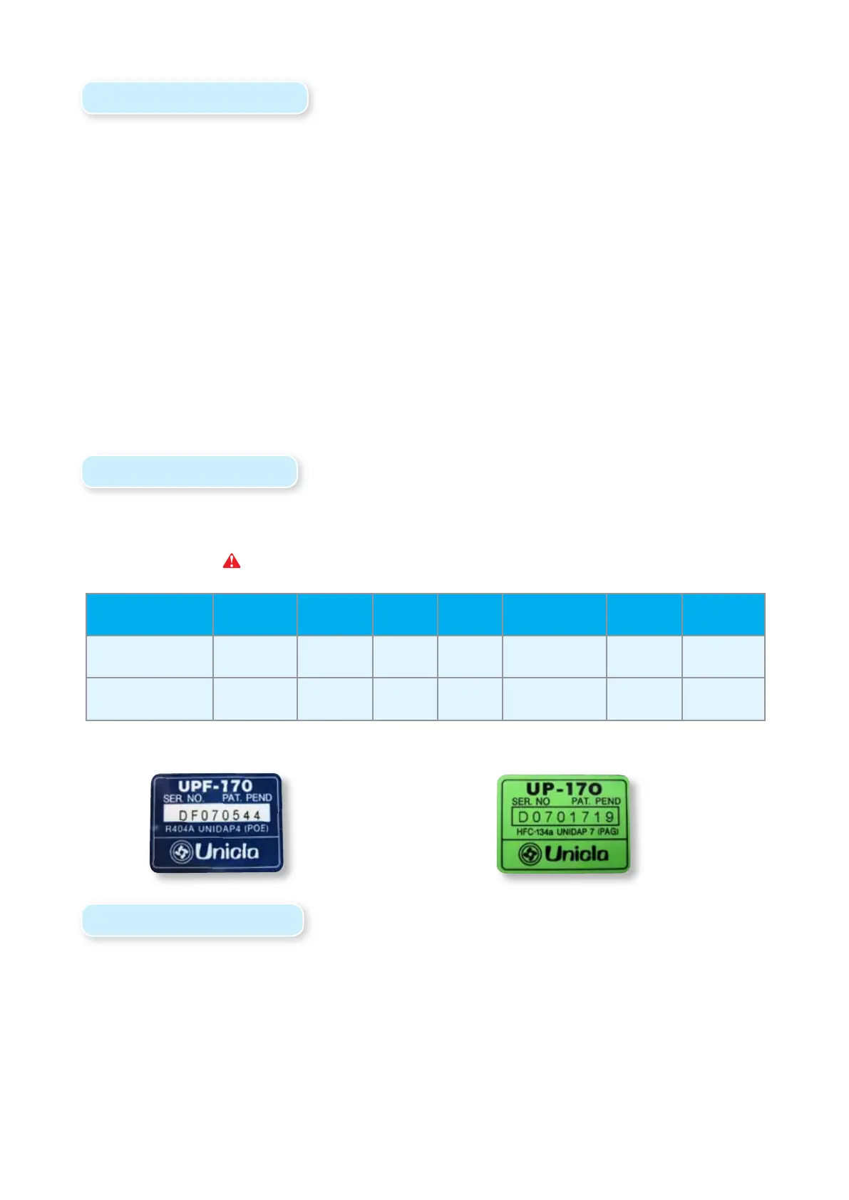 Each Unicla A-Group compressor is tted with either PAG oil (Unidap 7) or POE oil (Unidap 3 is