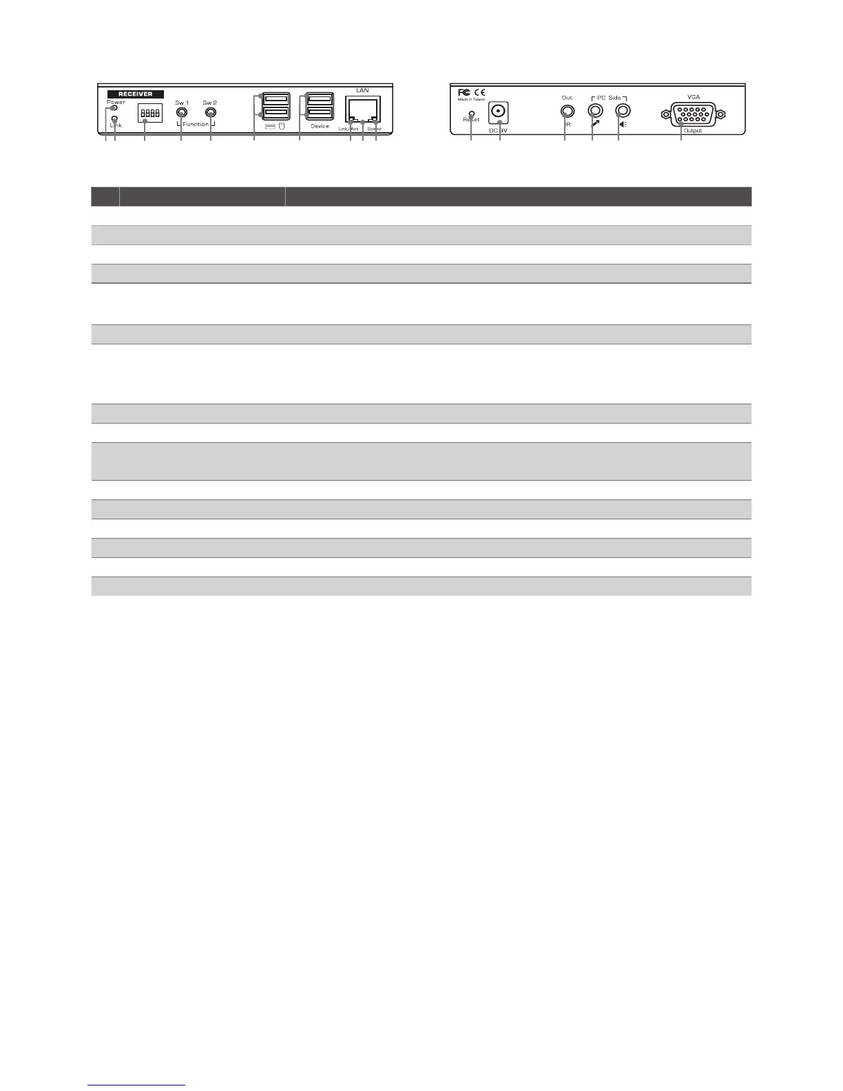 9 LAN port Connect to the LAN port of Transmitter or a Gigabit Ethernet Switch.