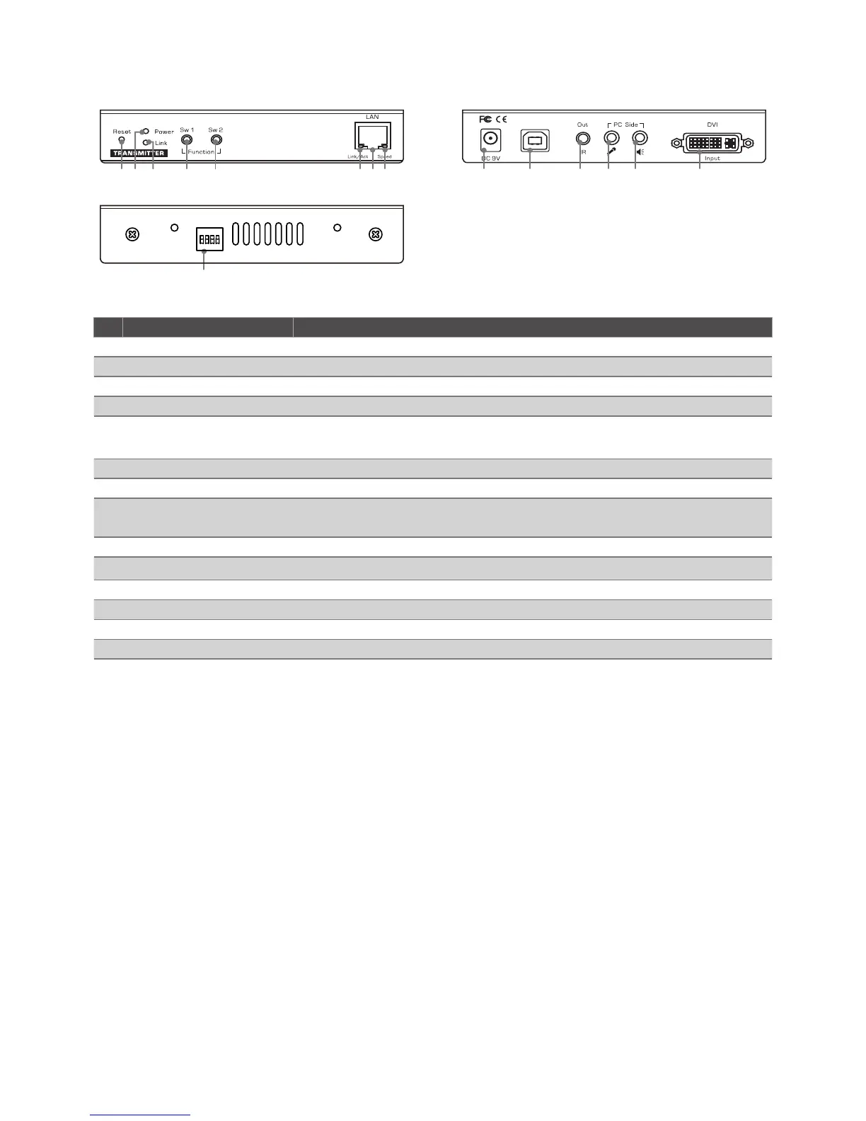 7 LAN port Connect to the LAN port of Receiver or a Gigabit Ethernet Switch.