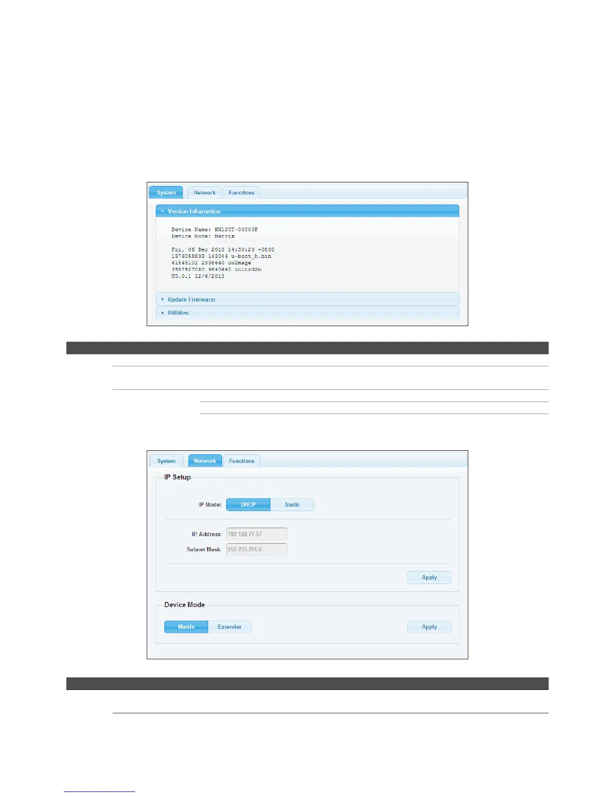 Device Mode Matrix/Extender Select the operation mode depending on the connection