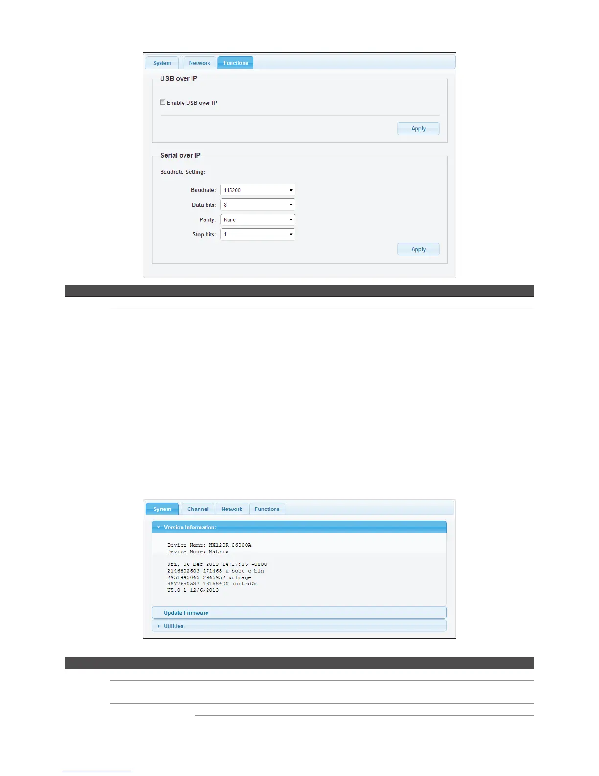 Function USB over IP Enable/disable the sharing of USB peripheral through Ethernet.