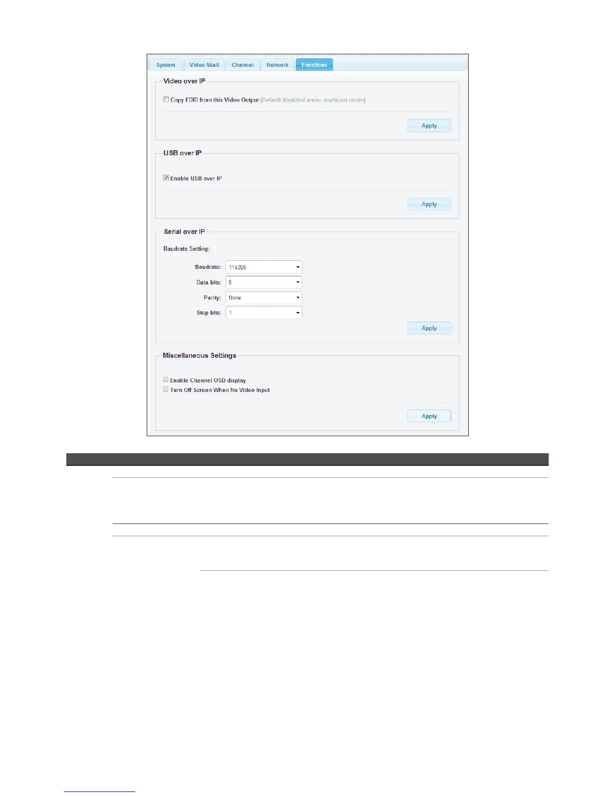 Function Video over IP Enable/disable the copy function from EDID compliant monitors automatically.