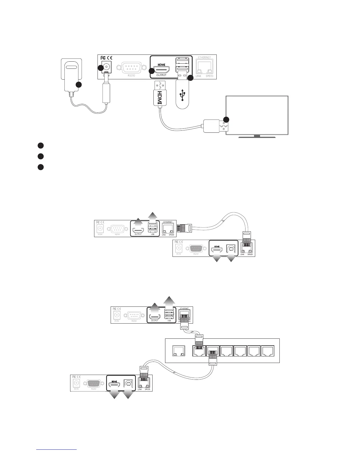 Alternatively, the Receiver can be extended another 100m using a Gigabit Ethernet hub (not included).