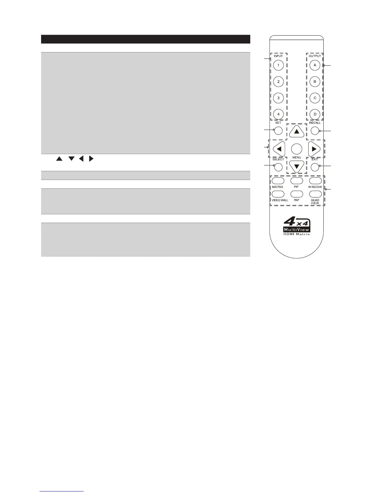 input(1~4) and output(A~D) on the unit will