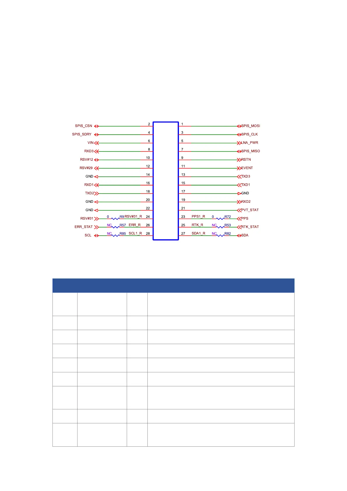 The dual-row 28 pins serve as the external interfaces of UM982eb, and the pin pitch is 2