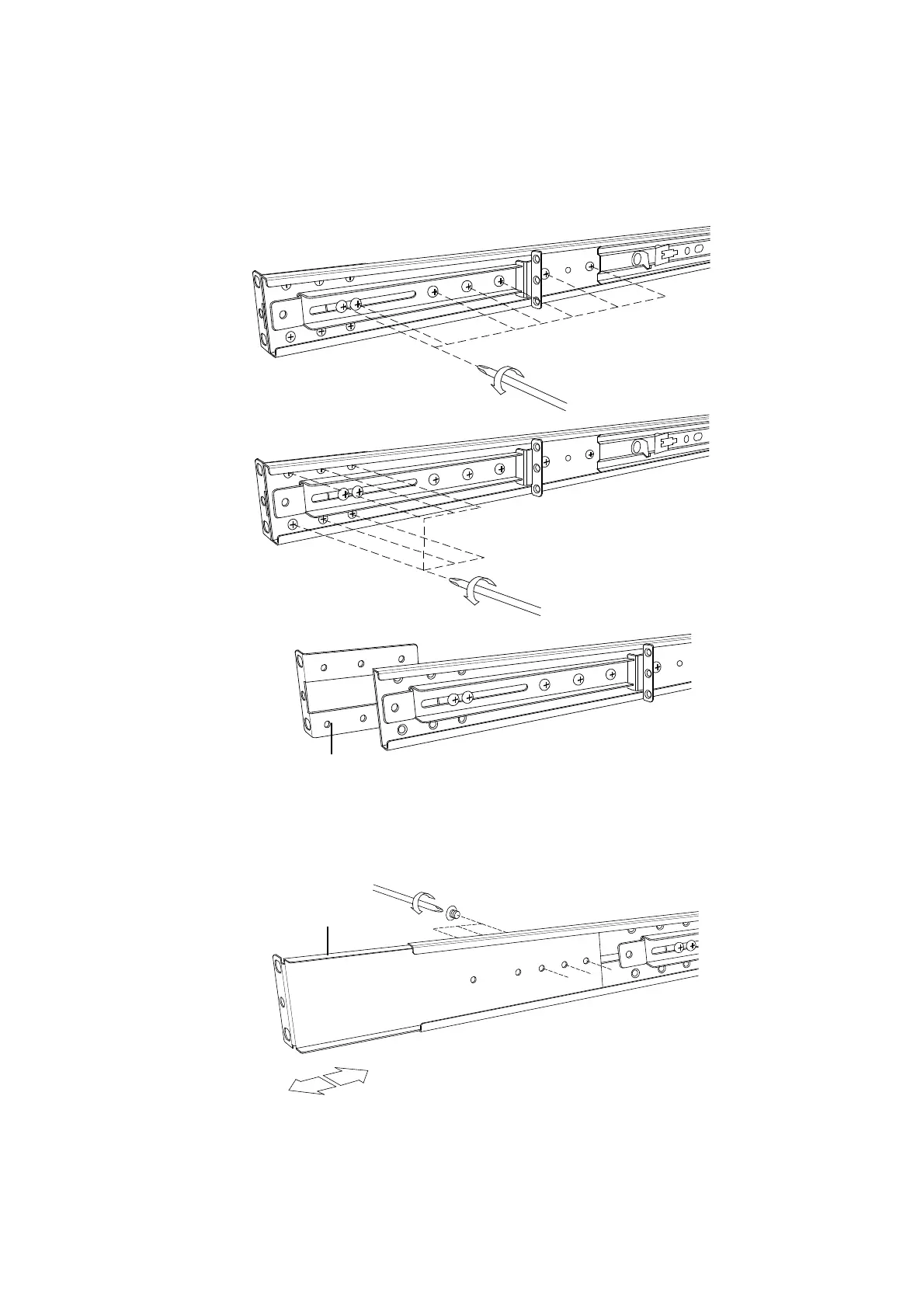 4. Adjust rail and input extended bracket to rear of the rail then adjust extended