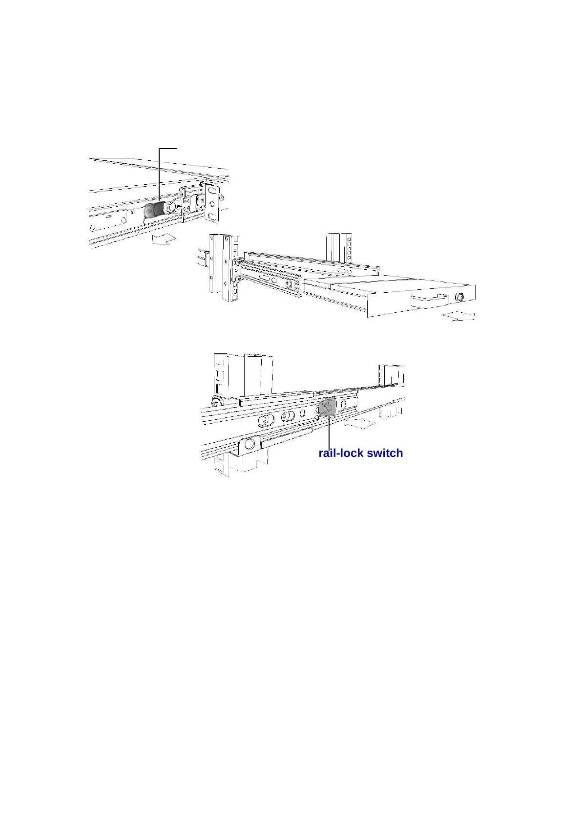 7. Push rail-lock switch on the rail and push rail back. (Both sides)